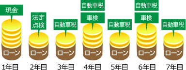 毎年発生する自動車税も法定点検費用も、2~3年に一度やってくる車検費用も含まれているので家計も安心!